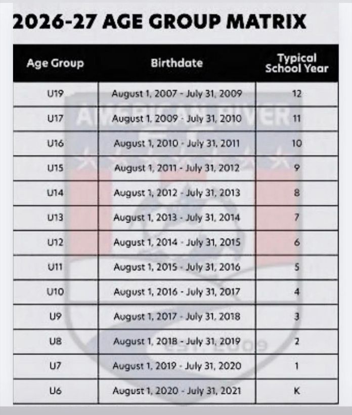 As you may or may not have heard, starting with the 2026-27 season, US Soccer, US Club Soccer, and NorCal Premier have made the decision to switch team formation from the current birth year model (January 1 - December 31) to one based on the academic year (August 1 – July 31). (See Attached Age Group Matrix.)